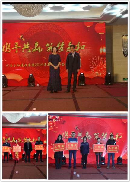 金戈鐵馬聞?wù)鞴?,只?zhēng)朝夕啟新程。2019年1月26日下午,“攜手共贏筑夢(mèng)永和”——河南永和建設(shè)集團(tuán)2019年新春團(tuán)拜會(huì)暨頒獎(jiǎng)典禮在錦江國(guó)際酒店隆重召開(kāi),信陽(yáng)市政協(xié)副主席、市工商聯(lián)主席陳豫,信陽(yáng)市平橋區(qū)政協(xié)副主席陳明德、信陽(yáng)市委統(tǒng) 戰(zhàn)部辦公室主任楊輝、信陽(yáng)市平橋區(qū)工商聯(lián)主席張虹、商城縣、羅山縣、五里辦事處等多位領(lǐng)導(dǎo)、信陽(yáng)日?qǐng)?bào)社、信陽(yáng)電視臺(tái)等多家媒體領(lǐng)導(dǎo)及新聞?dòng)浾?、河南永和建設(shè)集團(tuán)有限公司全體員工及家屬、合作商,社會(huì)友人出席了本次團(tuán)拜會(huì)。大家歡聚一堂,辭舊迎新、表彰、文藝展演,共同度過(guò)了振奮人心又愉快難忘的時(shí)光。