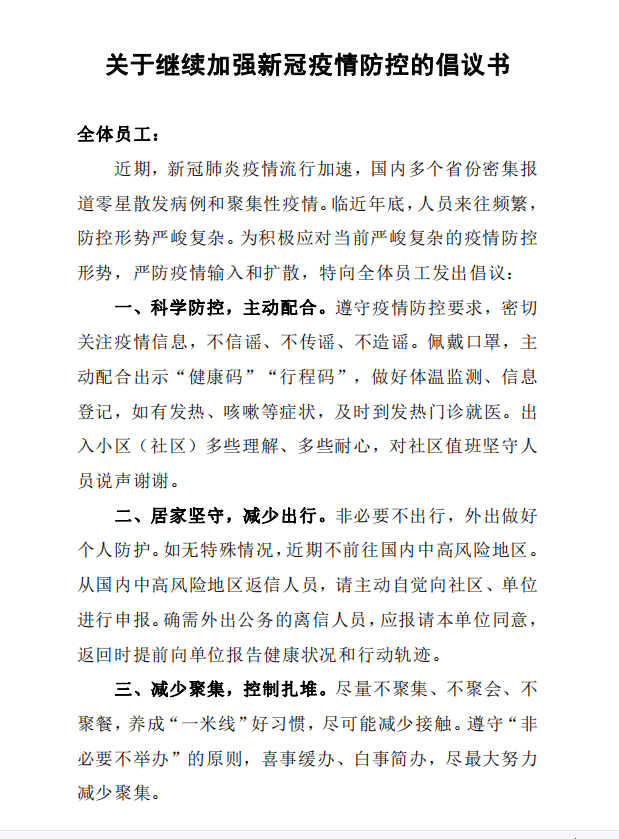 關(guān)于繼續(xù)加強新冠疫情防控工作的倡議書
